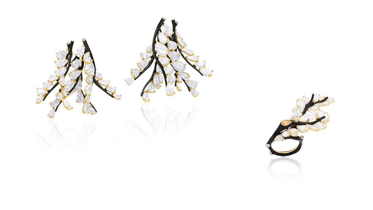 The Diamond Branch Ring is set with 34 pieces of diamonds and a yellow diamond, totalling 9.82 carats.